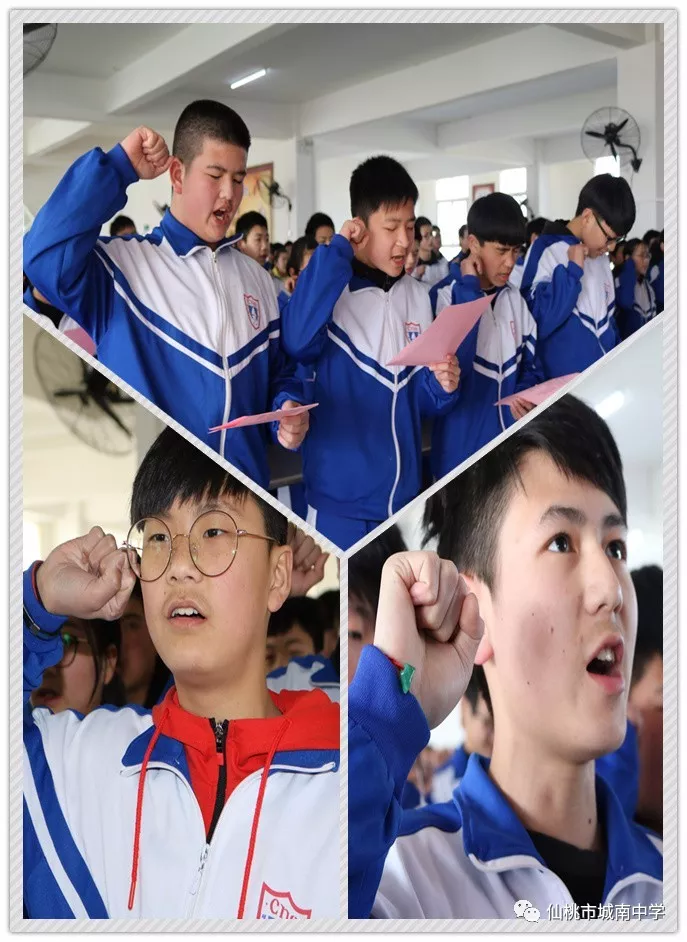 3月20日,星期二,城南中学召开初三学子中考冲刺誓师大会!初三学子个个精神抖擞、激情高涨!