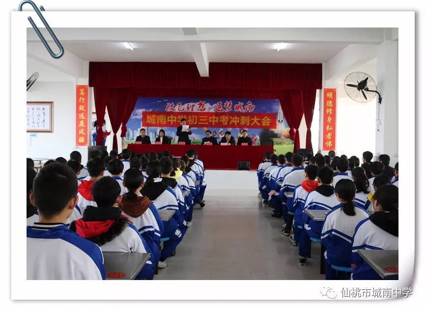 3月20日,星期二,城南中学召开初三学子中考冲刺誓师大会!初三学子个个精神抖擞、激情高涨!